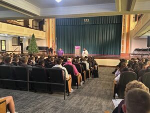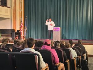 During his talk, Casey encouraged students to see their daily challenges as opportunities for growth. Centering his message on the theme “The Fire Inside,” he explained that sometimes God lights a fire within us to draw us closer to Him and to help us become stronger, more compassionate people.