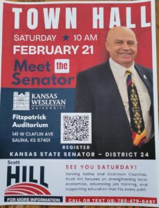 This Saturday morning, February 21, at 10 A.M., Senator Hill will hold his Town Hall meeting at Fitzpatrick Auditorium in Sam’s Hall of Fine Arts. This event is open to the public, and it provides the community with an opportunity to meet the man representing Salina in the State Senate. In the past, Senator Hill attended Saline County and city meetings. These allowed his voters more chances to get to know him. Now that the state senate is in session, this is the perfect chance for his voting base to engage with him and talk about their concerns and needs. He plans on discussing his policies on local economies, jobs, and education.